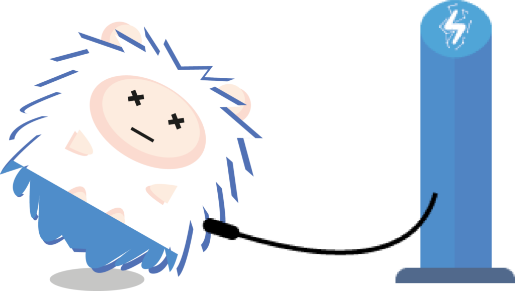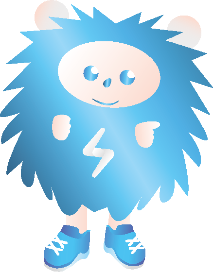 青いハリネズミは漫画でメッセージを伝えられます。若い顧客がターゲットになります。電気切れのハリネズミが充電をしている様子や、緑の葉っぱを矢印代わりに使用し大事な情報をポイントとして指したりできます。